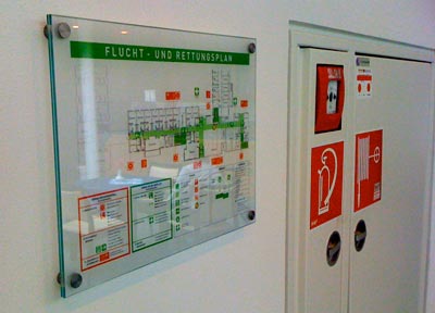 - Auf Wunsch montieren wir die Fluchtpläne im Gebäude fachgerecht an den notwendigen Orten