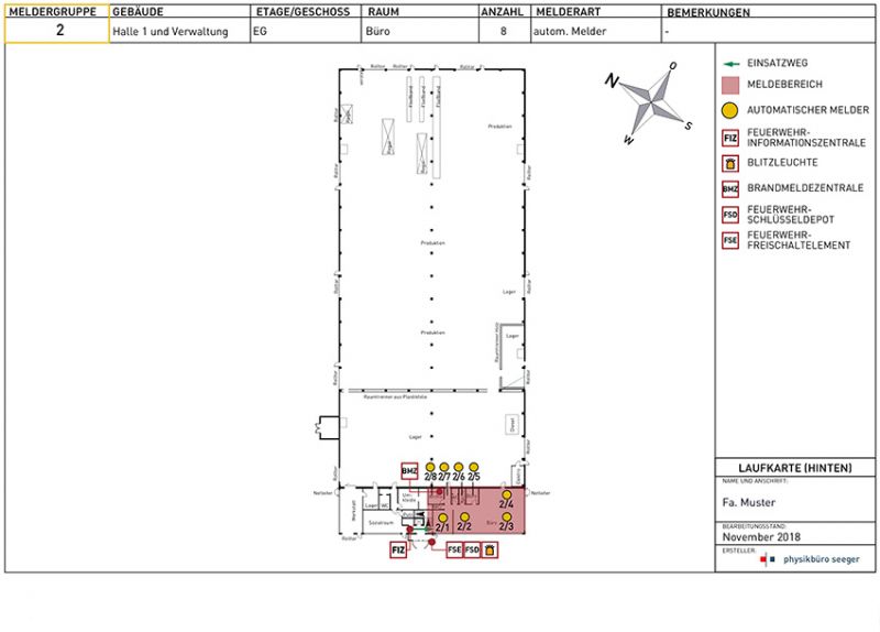 Für jede Meldergruppe wird eine Karte erstellt, auf der die Wege zu den einzelnen Meldern – von der Brandmelderzentrale aus – eingezeichnet sind.